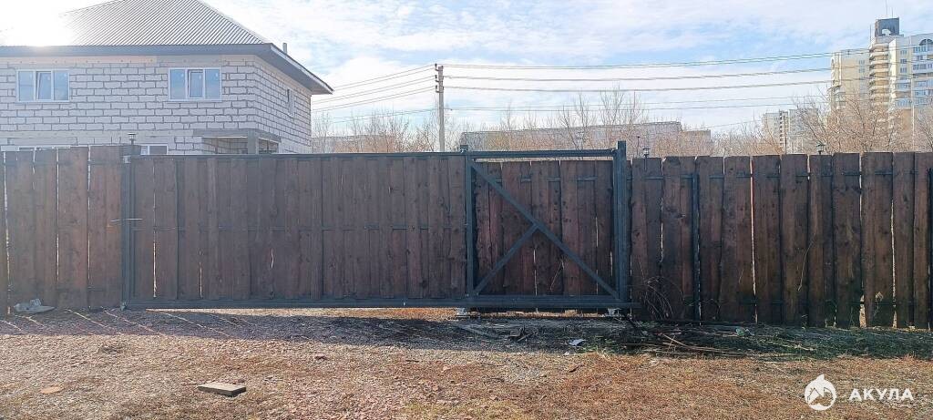 Большая дворовая территория - 15 соток, огорожена качественным 2м забором, установлены откатные ворота для удобного заезда автомобиля.