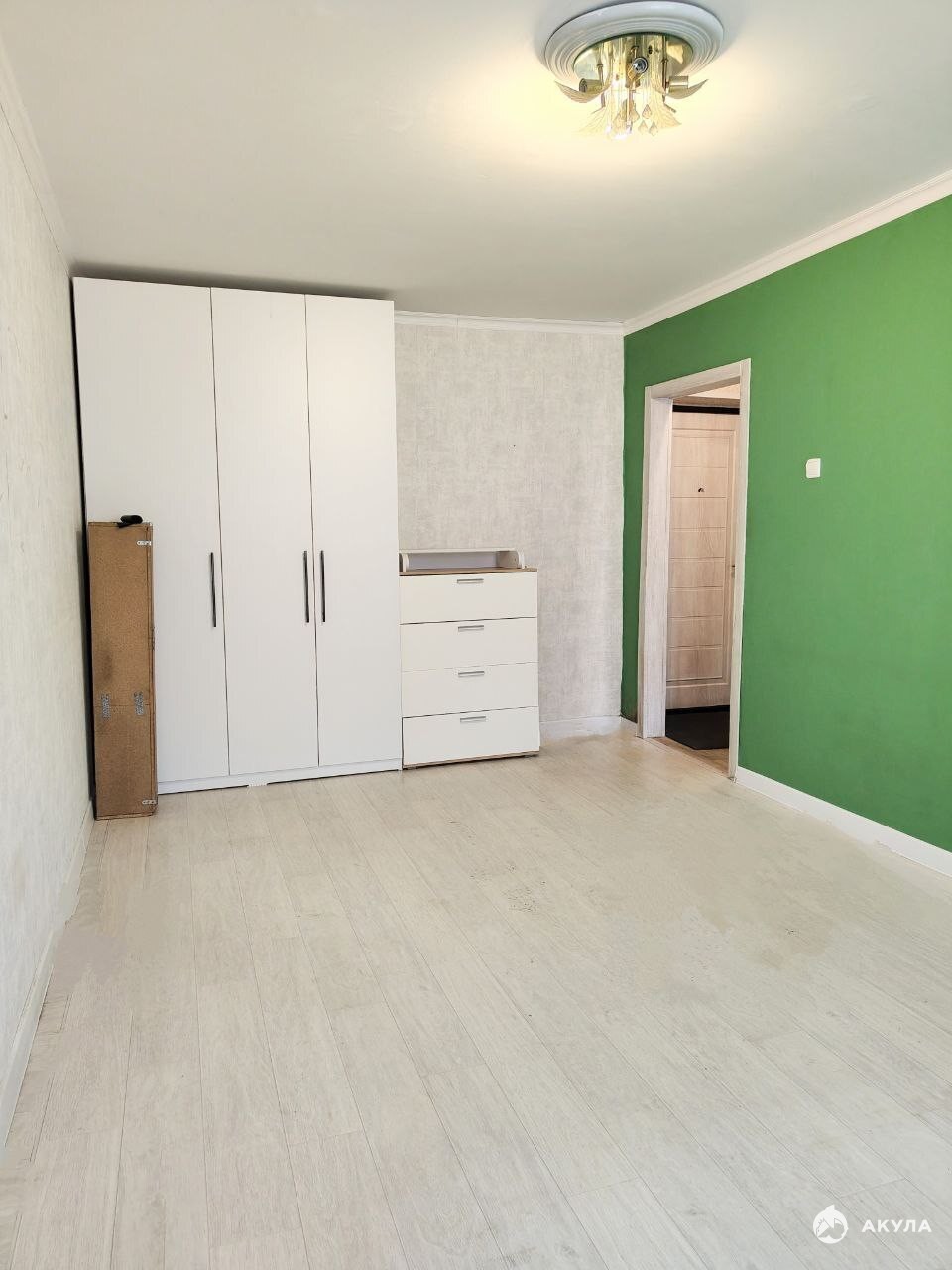 В комнате огромный новый шкаф.