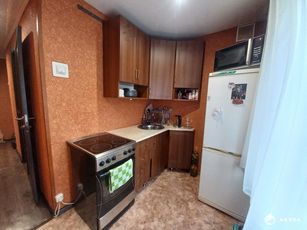 Новым хозяевам останеться шкаф купе и куханный гарнитур.